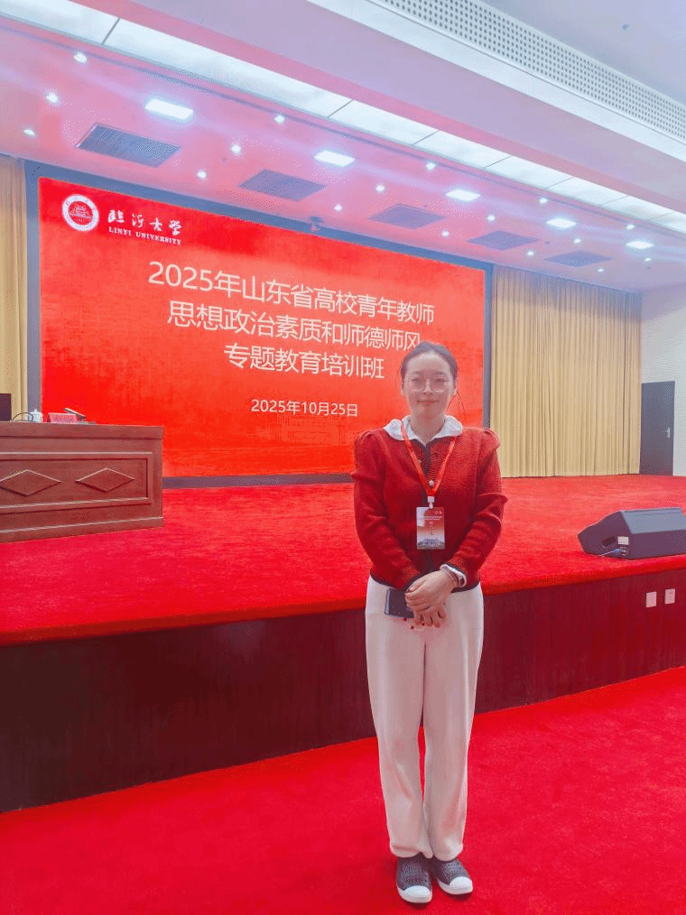 为进一步提升高校青年教师思想政治素质与师德师风建设水平,2025年10月22日至26日,山东省教育厅组织的高校青年教师思想政治素质和师德师风专题教育培训在临沂大学顺利举办。beat365姜文文老师作为高校青年骨干教师代表参训,并在总结汇报阶段作为小组代表发言。