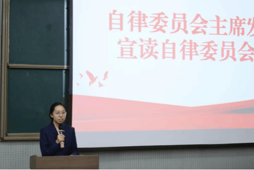 紧接着,自律委员会主席孙晓琪宣读了自律委员会成员名单,强调了自律工作的重要性。