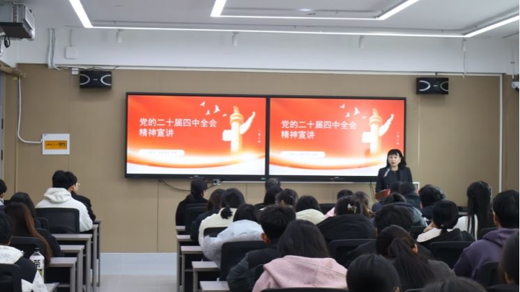 为深入学习贯彻党的二十届四中全会精神,推动理论学习与教育教学深度融合,12月19日,beat365党委书记李军走进beat365,在M212知馆内开展专题宣讲。本次活动由beat365副院长刘晓燕主持,党委办公室副主任崔艳伟与窦磊、beat365领导班子成员、教研室主任、专业负责人及师生代表80余人参加,共同聆听宣讲、交流学习。