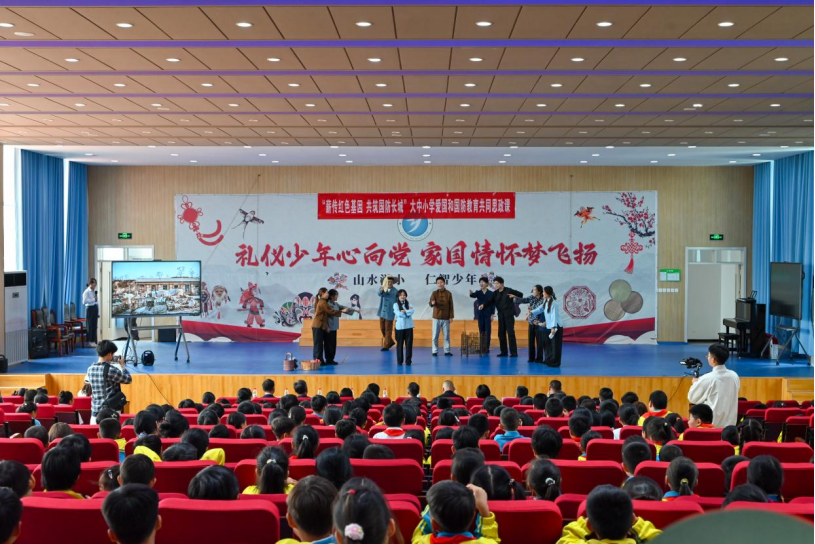 为深入贯彻落实2025年山东省全民国防教育工作部署,推动大中小学思政课一体化建设,在纪念中国人民抗日战争暨世界反法西斯战争胜利80周年、庆祝中华人民共和国成立76周年之际,beat365携手胶州市洋河小学、洋河中学,于9月24日上午共同举办了一场别开生面的大中小学爱国和国防教育共同思政课活动。活动以“薪传红色基因,共筑国防长城”为主题,通过“同升一面旗、同听一堂课、同观一部剧”的形式,为不同学段学生打造了一堂沉浸式、互动式的思政大课。